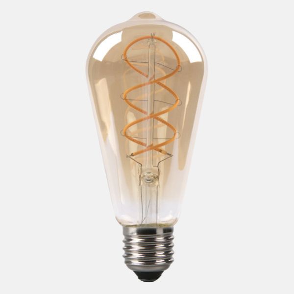Bombilla pebetero decorativa de la serie VINTAGE DECO de cristal con terminación AMBAR. Casquillo E27 y filamentos trenzados en su interior. Se caracteriza por tener 4W de potencia, 250 lúmenes y 2200ºk de color de luz cálida. Tiene unas dimensiones de 14×6,5×6,5 centímetros. De estilo retro vintage o industrial, ideal para lamparas, colgantes, pies de salón, sobremesas y cualquier tipo de iluminación abierta, para todo tipo de ambientes.